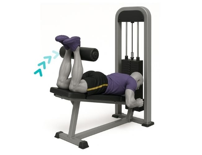 Ajusta la máquina para que el rodillo se apoye sobre los tobillos. Contrae los isquiotibiales al elevar el peso hacia los glúteos. Mantén una pausa en la parte alta y baja de manera controlada. Evita arquear la espalda durante el movimiento.