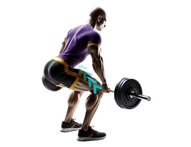 Coloca los pies a la altura de las caderas, agarre a la anchura de los hombros. Baja con control y sube activando los glúteos y los erectores espinales. Mantén la barra pegada al cuerpo y evita arquear la espalda baja.