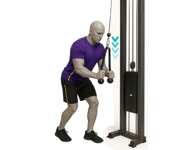 Colócate de pie al lado de una polea baja con el asa en la mano más alejada. Inclina ligeramente el torso hacia el lado opuesto y comienza a elevar el brazo lateralmente hasta alcanzar la altura del hombro. Mantén una ligera flexión en el codo durante todo el recorrido. Baja de manera controlada sin dejar que el peso tire del brazo.